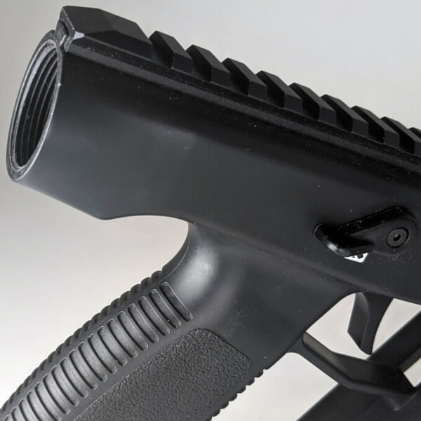 One end of the adapter attaches directly into the Gen 2.1 Vector's upper housing. The other end features threading that will accept an AR buffer tube or pistol tube.