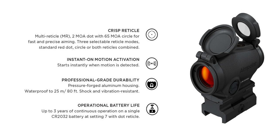 - Instant-on motion activation, the sight starts instantly when motion is detected